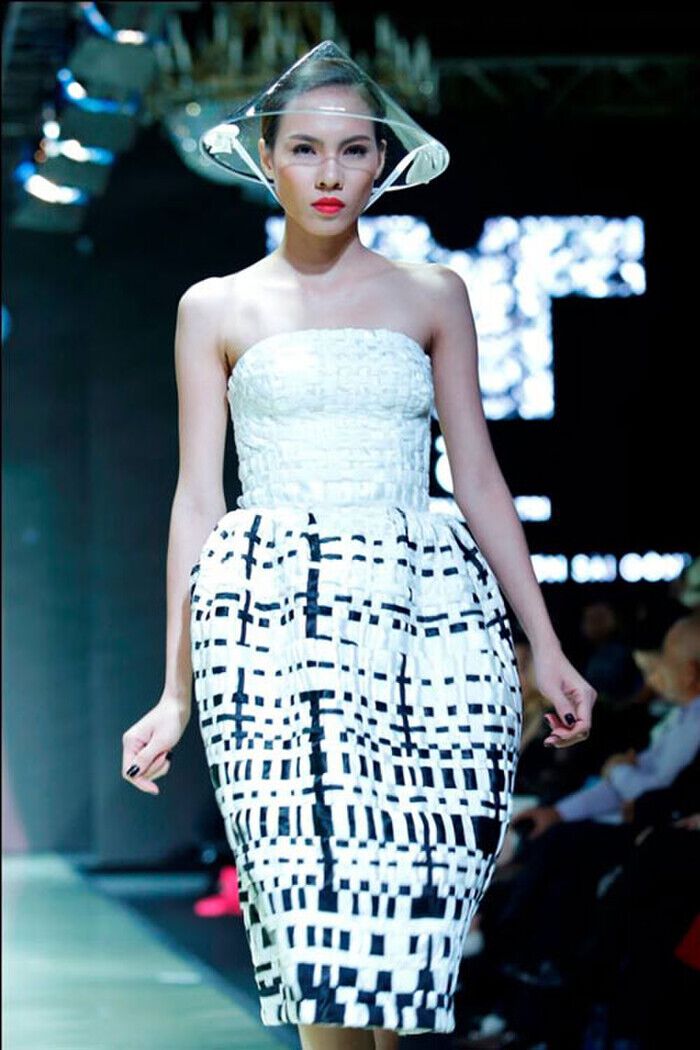 NTK Công Trí đã khéo léo lồng ghép hình ảnh chiếc nón lá cách tân từ chất liệu plastic quen thuộc.